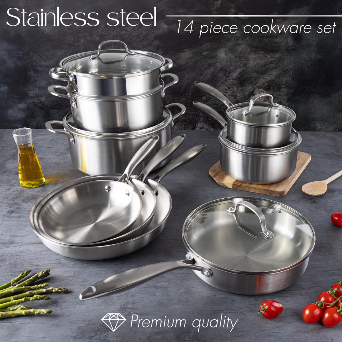 Elevate your cooking experience with our premium 14-piece stainless steel cookware set, engineered for home chefs who demand both performance and style. Whether you're searing, simmering, or sautéing, this complete kitchen solution delivers restaurant-quality results every time.